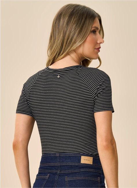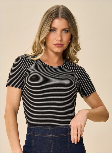 Blusa Canelada Listrada Manga Curta