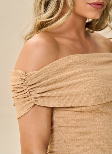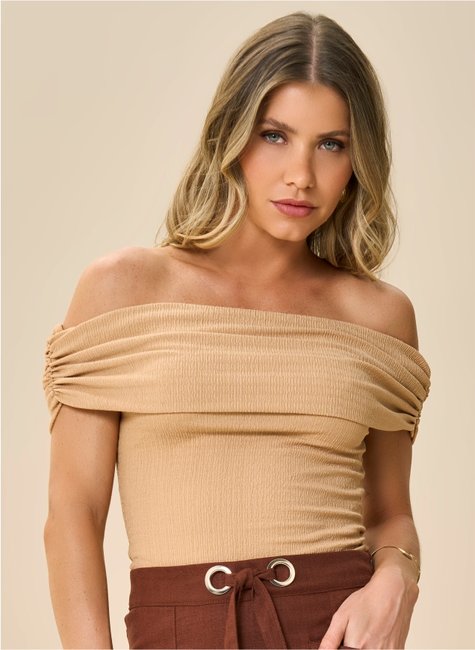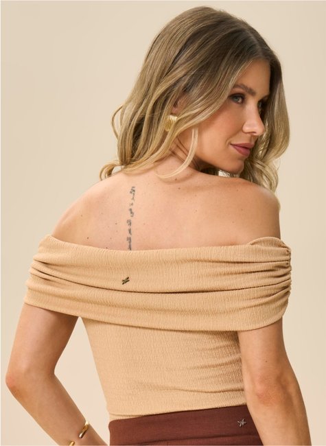 Com toque moderno e feminino, a blusa texturizada ombro a ombro destaca o colo de forma elegante e atual. A modelagem ajustada ao corpo valoriza a silhueta, criando um visual equilibrado entre sofisticação e conforto.