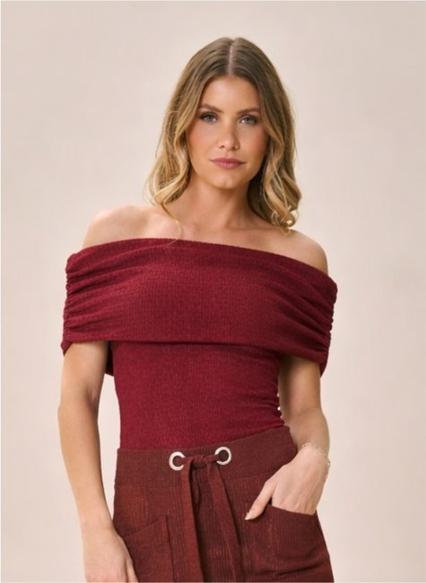 O decote ombro a ombro adiciona charme e um ar contemporâneo à peça, enquanto a textura do tecido confere profundidade e diferenciação ao design. Versátil, pode ser usada em produções casuais ou composições mais elaboradas, combinando facilmente com jeans, saias ou alfaiataria.