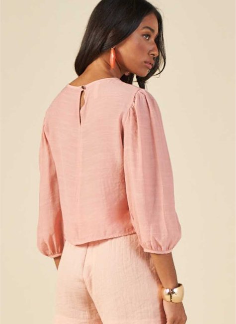 Com mangas amplas e franzido nos ombros e punhos, a peça ganha volume e um caimento que valoriza os gestos e o movimento do corpo. Confeccionada em tecido leve (60% viscose e 40% poliéster), proporciona conforto térmico, maciez ao toque e caimento suave.