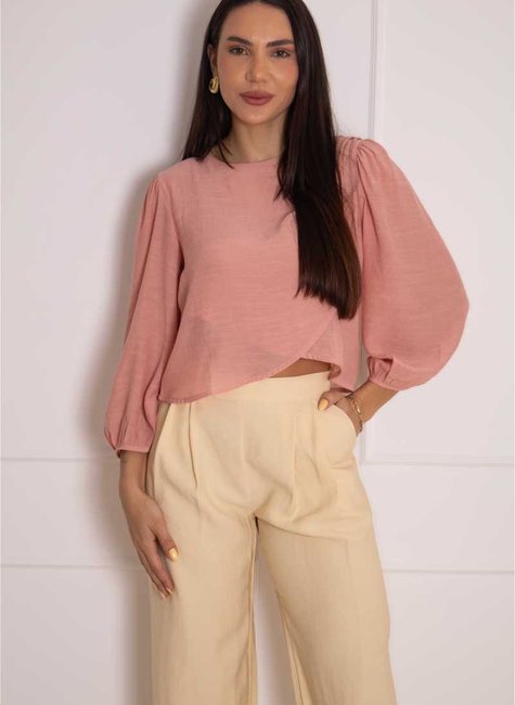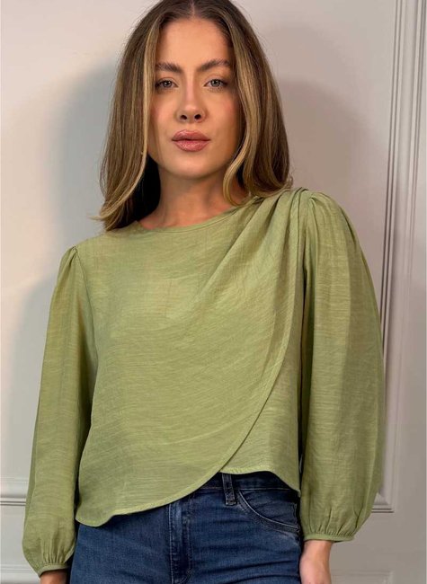 A Blusa Transpassada Leveza Natural une fluidez e sofisticação em um design delicado e cheio de movimento. Seu decote transpassado cria um elegante efeito de sobreposição, enquanto a transparência sutil do tecido adiciona leveza e um toque sensual à composição.