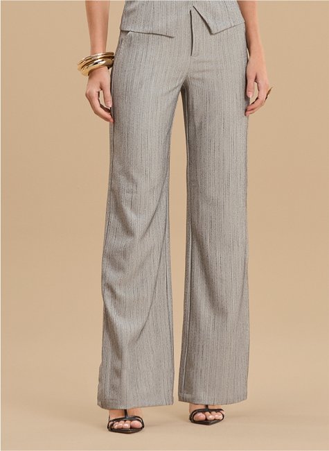 Calça de alfaiataria com modelagem ampla, que proporciona um caimento elegante e sofisticado. O design em risca de giz traz um visual clássico e atemporal, ideal para composições refinadas e modernas.