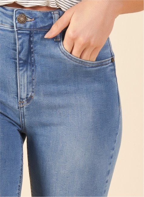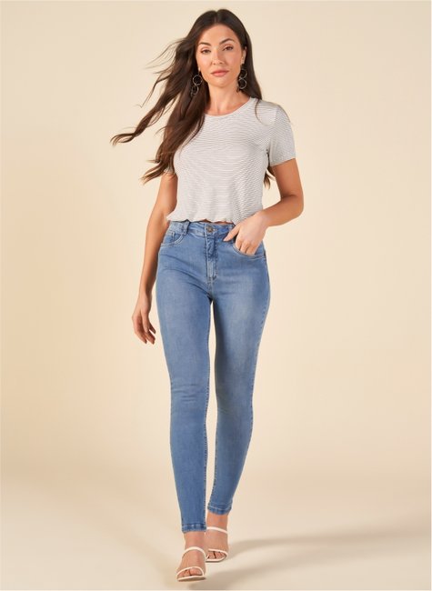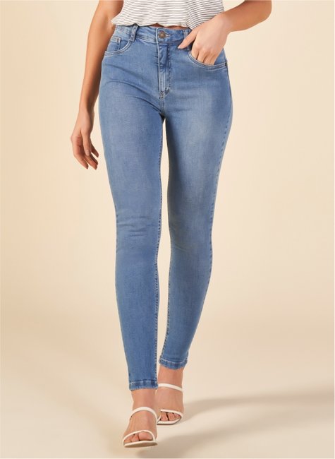 A calça jeans skinny é uma peça essencial no guarda-roupa feminino, combinando modelagem ajustada com muito conforto. Com lavagem média, ela traz um visual atemporal que se adapta a diversas ocasiões — do casual ao mais arrumado. Seu corte valoriza as curvas e garante um caimento justo do quadril até a barra.
