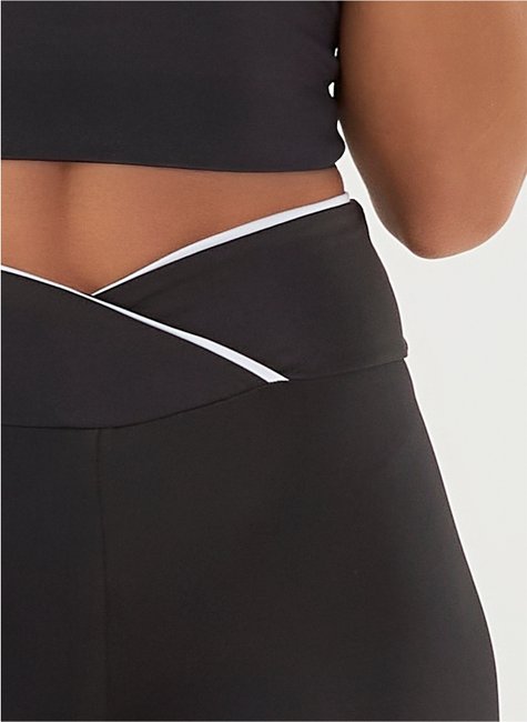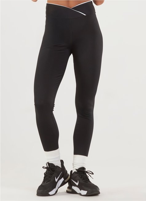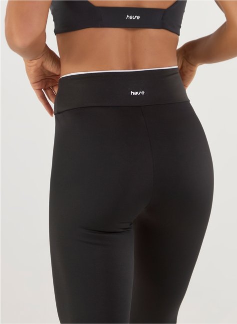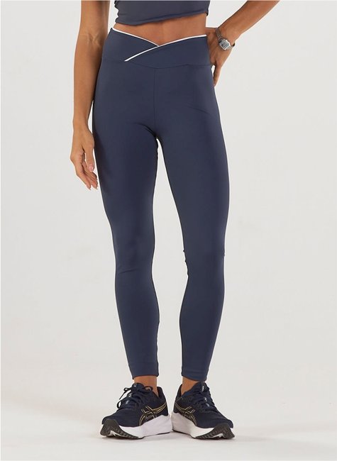 Calça legging com friso branco no cós, malha dupla, zero transparência e compressão confortável.