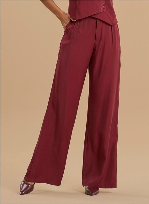 Calça wide leg com modelagem solta, que proporciona um caimento elegante e fluido. A peça alonga a silhueta e traz um visual moderno e sofisticado, ideal para composições versáteis que transitam entre o casual e o elegante.
