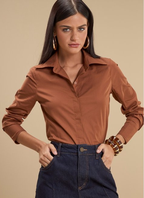 Camisa em tricoline com modelagem fluida e levemente acinturada, pensada para valorizar a silhueta de forma elegante e confortável. Uma peça versátil e lembra clássica, ideal para composições que transitam do ambiente profissional ao casual refinado.