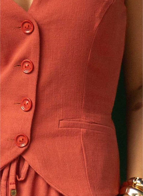 O colete em linho com ajustes nas costas é a peça-chave para criar produções elegantes e modernas com leveza. Versátil, transita do look de trabalho ao visual casual chic com facilidade, garantindo sempre um toque refinado.