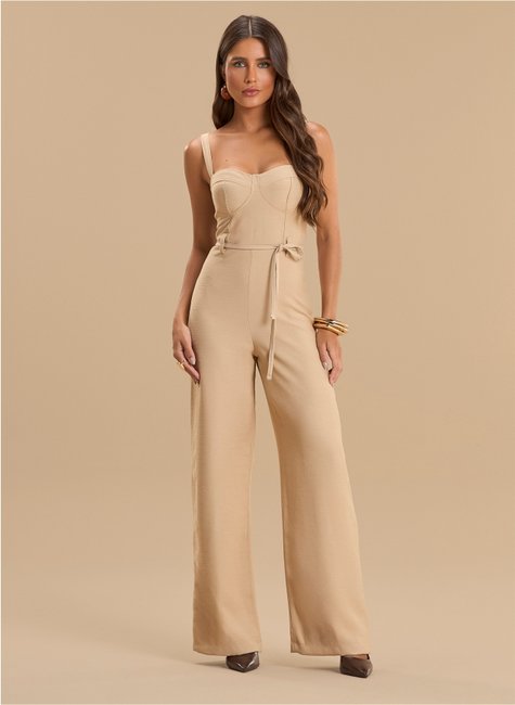 Macacão comprido em alfaiataria com modelagem ajustada, que valoriza a silhueta de forma elegante e alongada. A peça combina feminilidade e sofisticação em um design moderno e versátil.