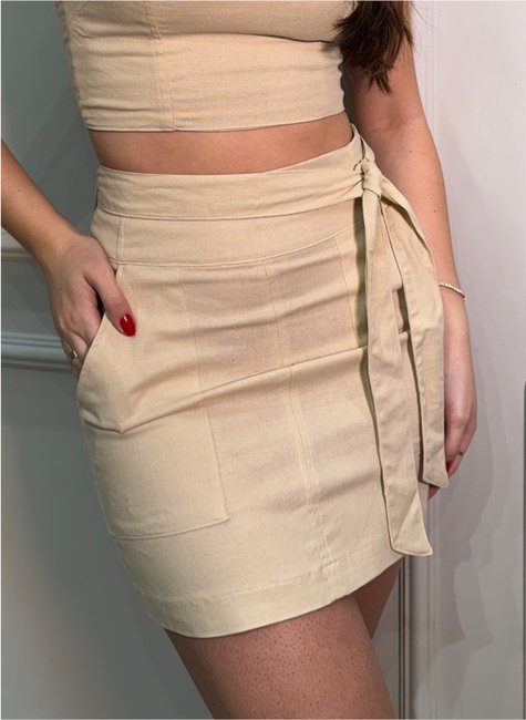 Saia Curta em Linho com Bolsos e Cinto