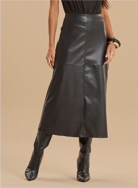 O modelo apresenta caimento estruturado que proporciona um visual alinhado e elegante. O acabamento em couro sintético agrega sofisticação à peça, enquanto o comprimento midi traz equilíbrio e versatilidade. Ideal para combinações com blusas mais ajustadas ou peças fluidas, permitindo diferentes propostas de styling.