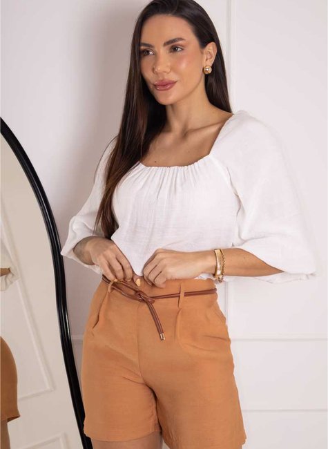O Short Alfaiataria Linho Elegante é a peça perfeita para quem deseja unir conforto e sofisticação em um visual leve e moderno. Seu corte de alfaiataria traz um toque refinado, enquanto os detalhes em pregas, passantes e o cinto fino removível acrescentam charme e personalidade à composição. A cintura alta valoriza a silhueta e dá um ar arrumadinho, sem esforço.