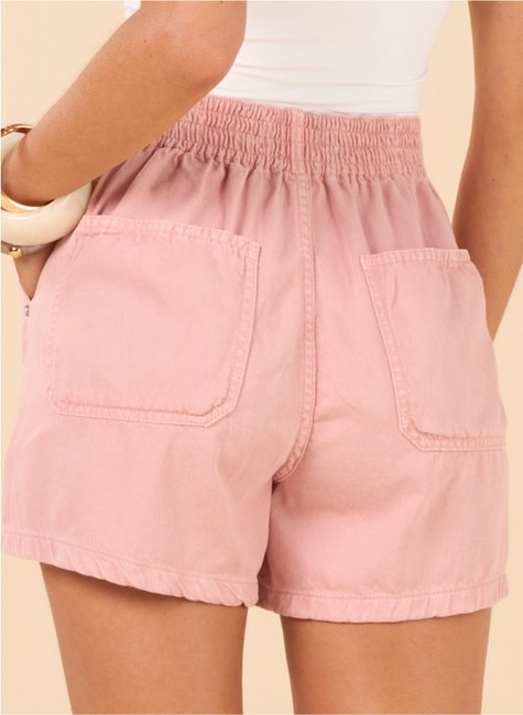 Short em Sarja com Elástico Traseiro e Bolsos