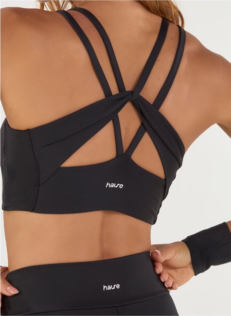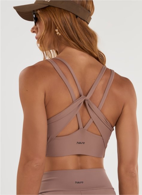 • Top esportivo com detalhe trançado nas costas