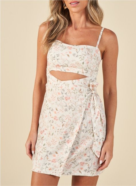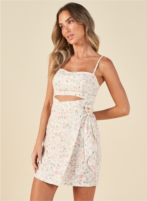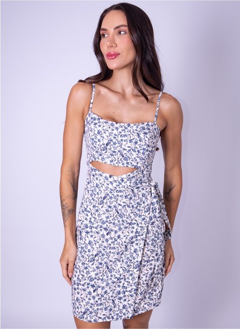 O modelo apresenta recorte frontal na região da barriga, criando um efeito atual e charmoso. A amarração lateral permite ajuste personalizado e acrescenta movimento à peça. As alças finas e ajustáveis garantem melhor adaptação ao corpo, enquanto o caimento fluido proporciona conforto durante o uso.