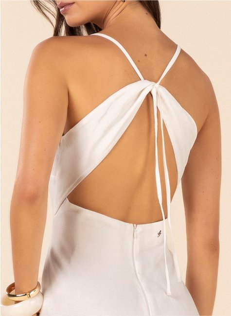 Vestido midi confeccionado em tecido de alfaiataria com base de viscose, que une elegância e conforto em uma proposta atemporal. O modelo de alças finas e decote em V valoriza o colo de forma equilibrada, enquanto a silhueta alongada garante um visual sofisticado, ideal para composições versáteis que transitam do dia à noite.