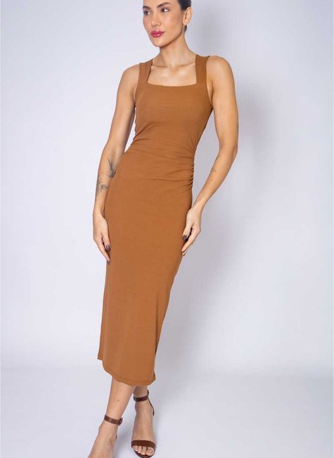 Com design minimalista e atemporal, o vestido conta com alças largas que garantem maior sustentação e segurança, além de um toque refinado à peça. O tecido de malha macia com elasticidade proporciona liberdade de movimento e um caimento impecável, destacando-se como um curinga no guarda-roupa para compor looks versáteis e estilosos.