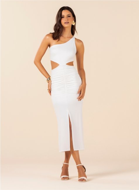 Vestido midi com design sofisticado e recortes estratégicos, ideal para ocasiões especiais que pedem elegância com personalidade. O modelo de um ombro só valoriza a silhueta feminina, oferecendo conforto, ajuste ao corpo e visual marcante, perfeito para eventos, festas e produções noturnas.