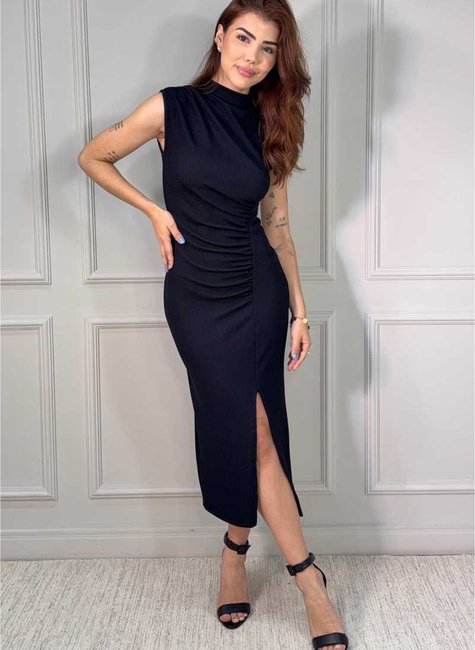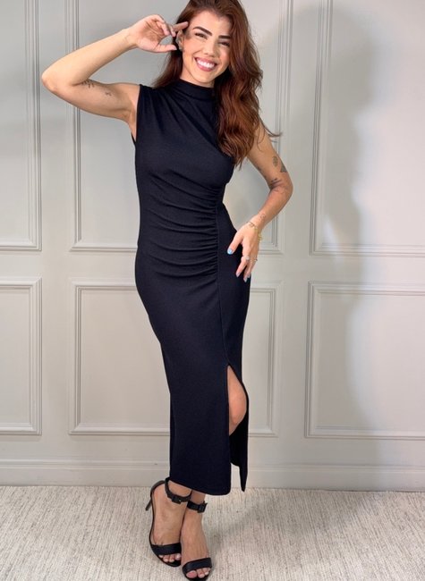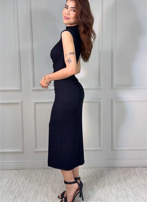 Elegância e sensualidade na medida certa. Este vestido midi é a definição de sofisticação contemporânea: sua modelagem ajustada valoriza as curvas com equilíbrio e charme, sem abrir mão do conforto. A gola alta confere um toque moderno e poderoso, enquanto o comprimento midi reforça a elegância da proposta.